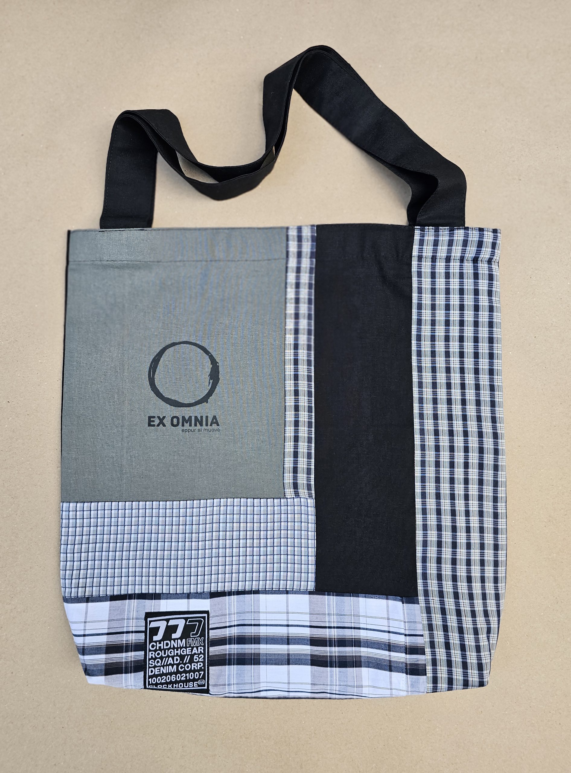 Velika platnena torba za namirnice sa dva para ručki , izrađena od kombinacije sirovog pamućnog platna i reciklirane košulje. Za višekratnu upotrebu. Ukoliko ne nosite cigle u njoj, torba Vam može služiti veoma duga.